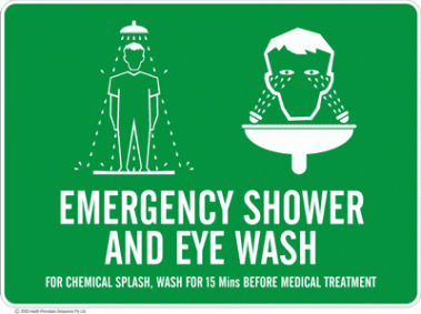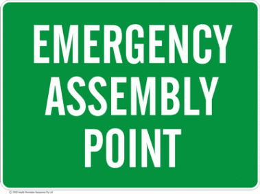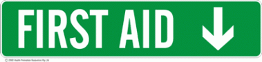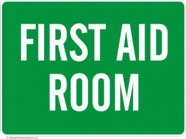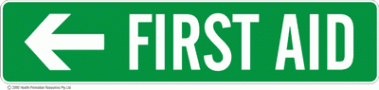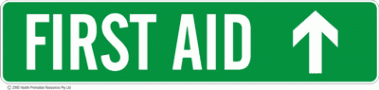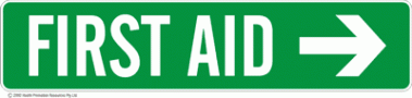 These signs shall comprise of a white symbol or text on a green rectangle with white enclosure. These signs indicate the location or direction to emergency related facilities and first aid or safety equipment.